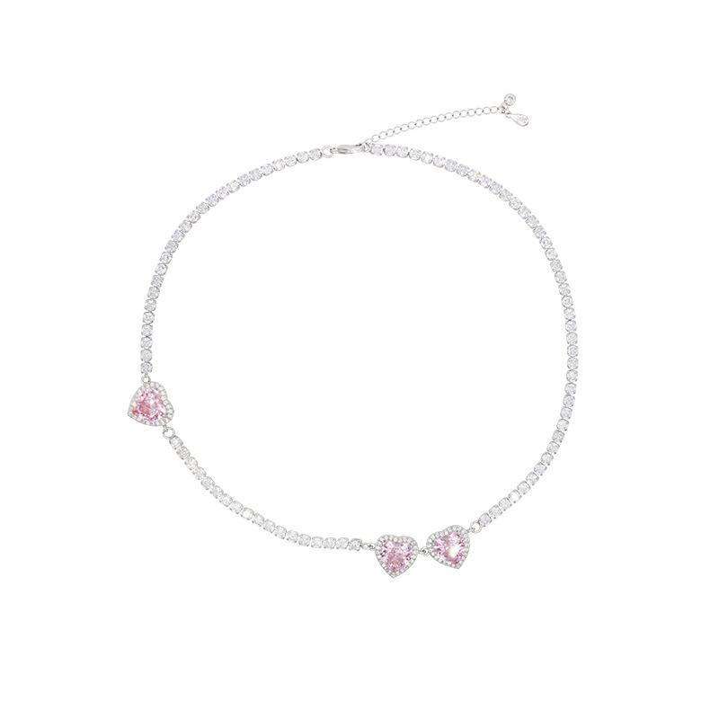 Легкое роскошное высококачественное женское ожерелье на ключице, летнее сладкое розовое выдвижное ожерелье с цирконом, полное ожерелье Three