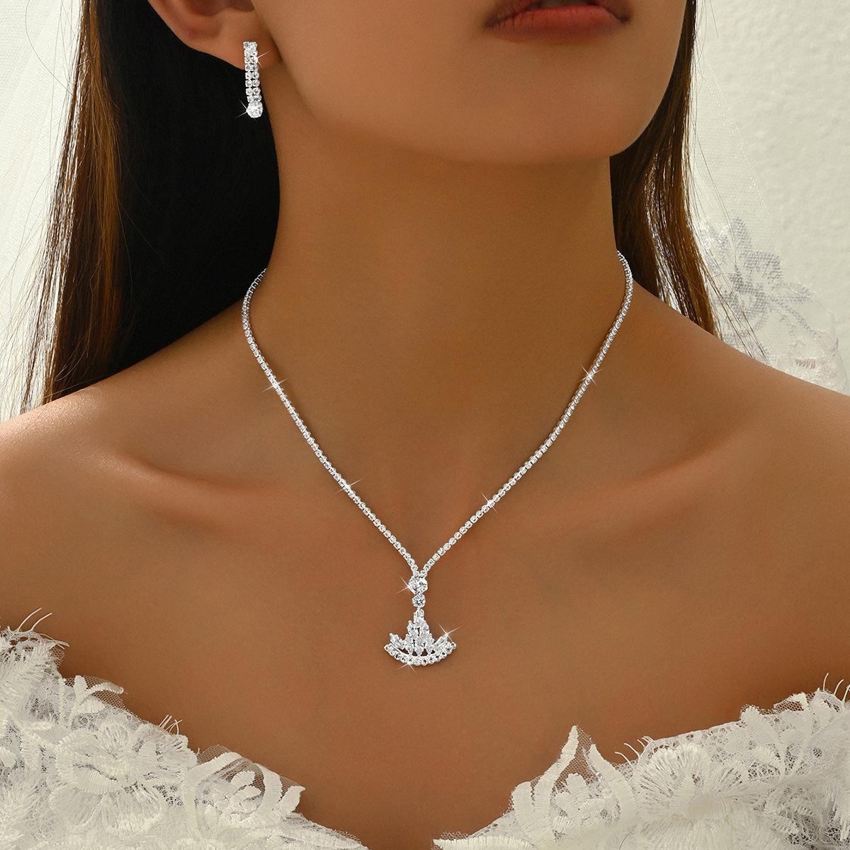 Легкое роскошное прохладное темпераментное цельное ожерелье из голого циркония, серьги, комплект, подвеска для парусного спорта, ожерелье премиум-класса, цепочка на ключицу
