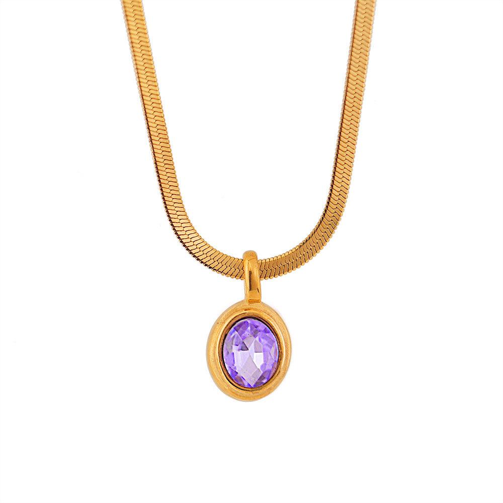 Легкое роскошное ретро-ожерелье в виде плоской змейки с овальным цветным цирконием светло-фиолетовый