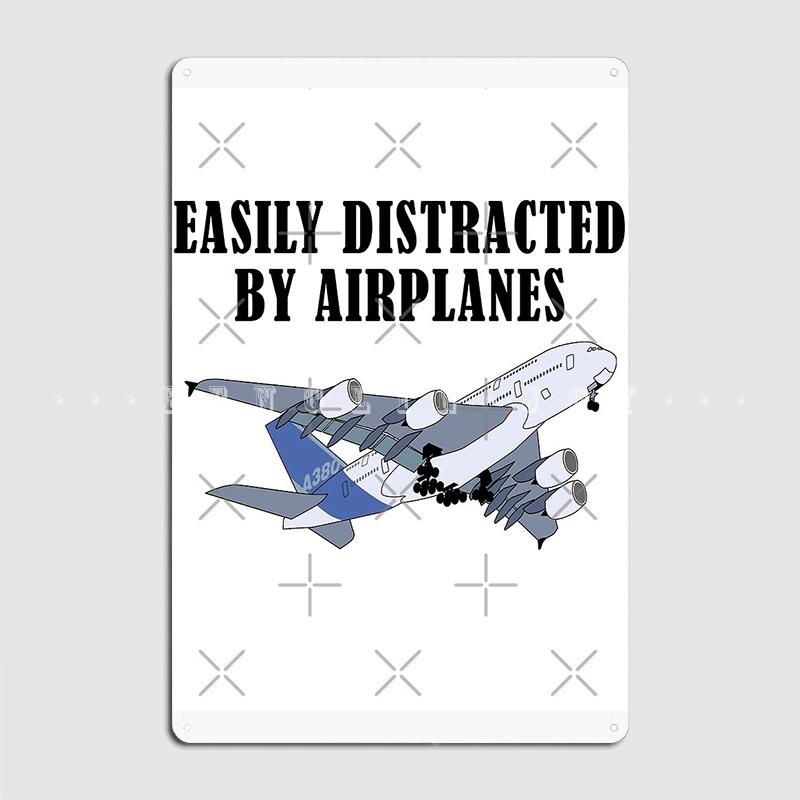 Легко отвлекается на самолеты. Металлическая вывеска. Клубный бар. Ретро таблички. Оловянные вывески. Плакаты. 20x30cm