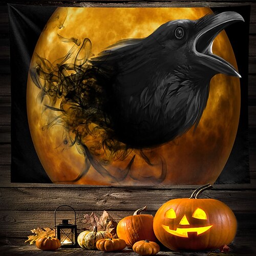 Halloween Party Wall Tapestry Art Decor Blanket Curtain Hanging Home Bedroom Living Room Decoration Polyester Pumpkin Bat Ghost Castle Witch