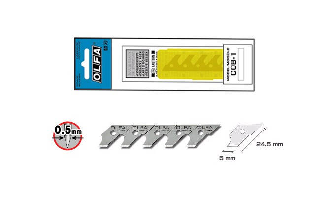 Лезвие OLFA COB-1, 5 сегментов, 15штС двойным углом заточкиДля ножей CMP-1, CMP-1/DX