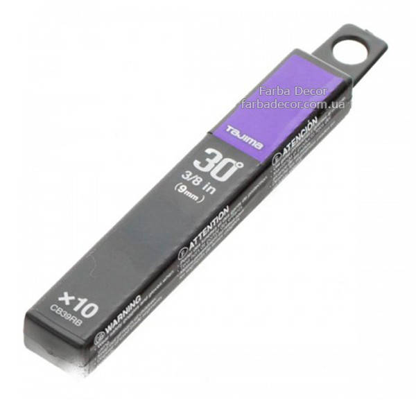 Лезвия TAJIMA PREMIUM DORA Razar Black Blades, 9 мм, угол наклона 30° (10 шт).TAJIMA производит лезвие как полноценный нож, а не одноразовую запаску.Лезвия изготовлены из углеродистой стали высокого качества по запатентованной технологии с использованием многошагового процесса доводки, что обеспечивает высокое качество, долговечность и остроту режущей кромки.• При изготовлении лезвий серии RAZAR BLACK применяется особая технология заточки, что делает это лезвие на 25% острее лезвий серии ENDURA.• Имеет двойной угол заточки и 13 режущих сегментов.• Длина лезвия - 80 мм• Ширина - 9 мм• Толщина - 0.38 мм• Лезвия предназначены для деликатных и прецизионных работ, угол наклона 30°.• Поставляются в пластиковом контейнере.• 10 штук в упаковке.
