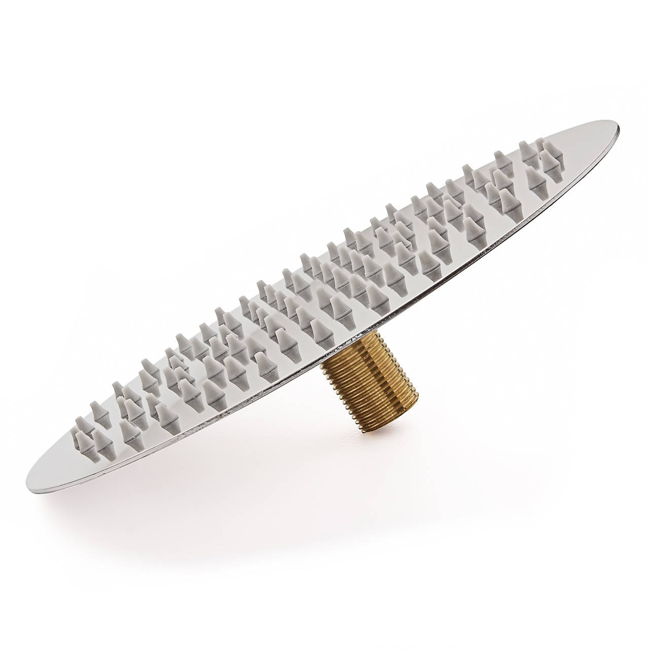 Предложенная разработчиками конструкция устройства предоставляет возможность без проблем зафиксировать лейку в потолке душевого бокса или кабины для этого в комплекте поставляется прижимная гайка. Шток отвечает за надежное крепление, подключение и подвод смешанного потока воды со смесителя, расположен по центру душевой насадки, имеет длину 34 мм, наружную резьбу на соединение и стандартный размер 1⁄2 дюйма (20 мм).