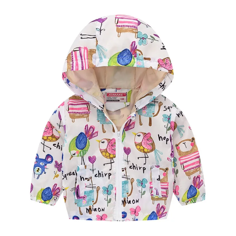 Jackets coat Sweet Cartoon Print Hooded Weatherproof rain top clothes Korean version 2-7 years old beibei high-quality clothing