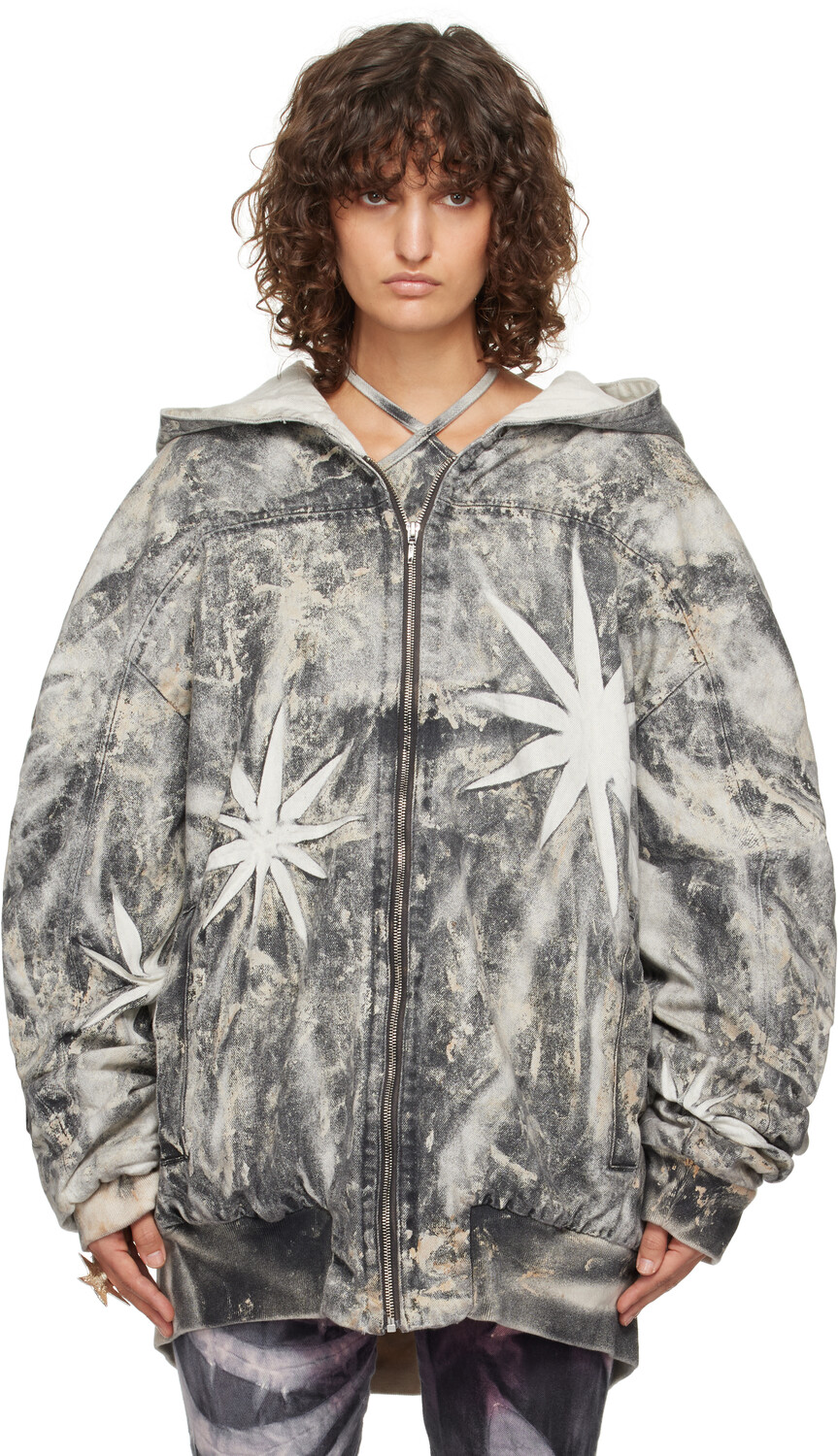 SSENSE Эксклюзивная белая и черная джинсовая куртка-бомбер большого размера с капюшоном Masha Popova