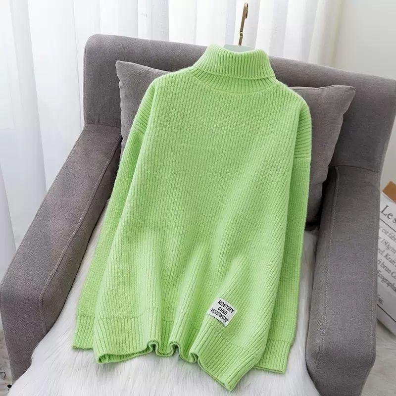 Ленивый и милый свитер с высоким воротом, пуловер для женщин, осень-зима 2023, пуловер, свободная верхняя одежда, вязаный свитер, женские топы One Size зелёный