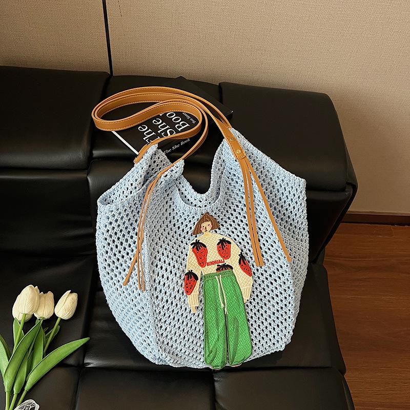 Ленивый стиль модная вязаная сумка женская новая сумка через плечо под мышку большая вместимость сумка-тоут для поездок синий
