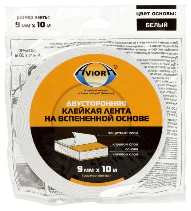 Лента клейкая Aviora двусторонняя вспененная белая, 9 мм х 10 м