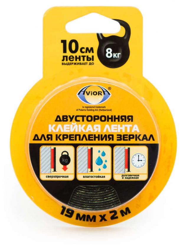 Лента клейкая Aviora двусторонняя для крепления зеркал, 19 мм x 2 м