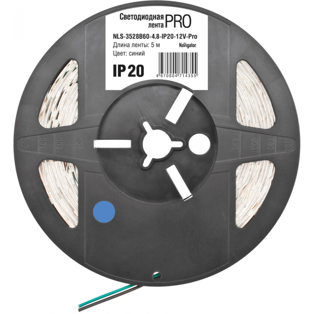 Лента светодиодная 71435, 5 м, 60 шт./4.8 Вт на метр, 12V, синий, IP20 Navigator (NLS-3528B60-4.8-IP20-12В-Pro R5), 71435