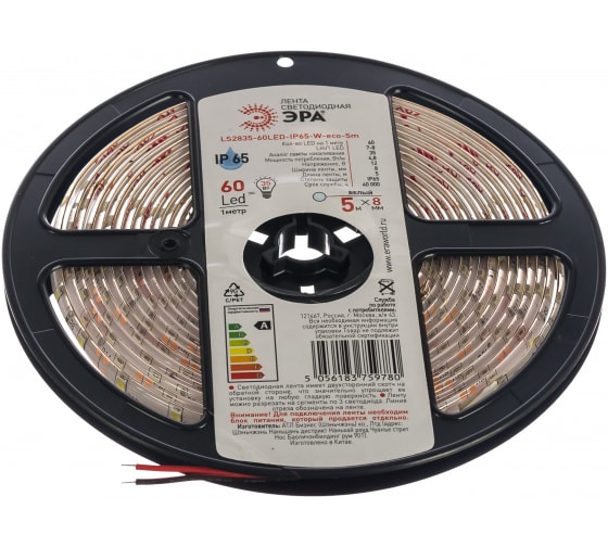 Лента светодиодная LS2835-60LED-IP65-WW-eco-5m, 5м, SMD 2835, 60шт./4.8Вт на метр, 12V, холодный белый, IP65 Эра (Б0035592), LS2835-60LED-IP65-WW-eco-5m