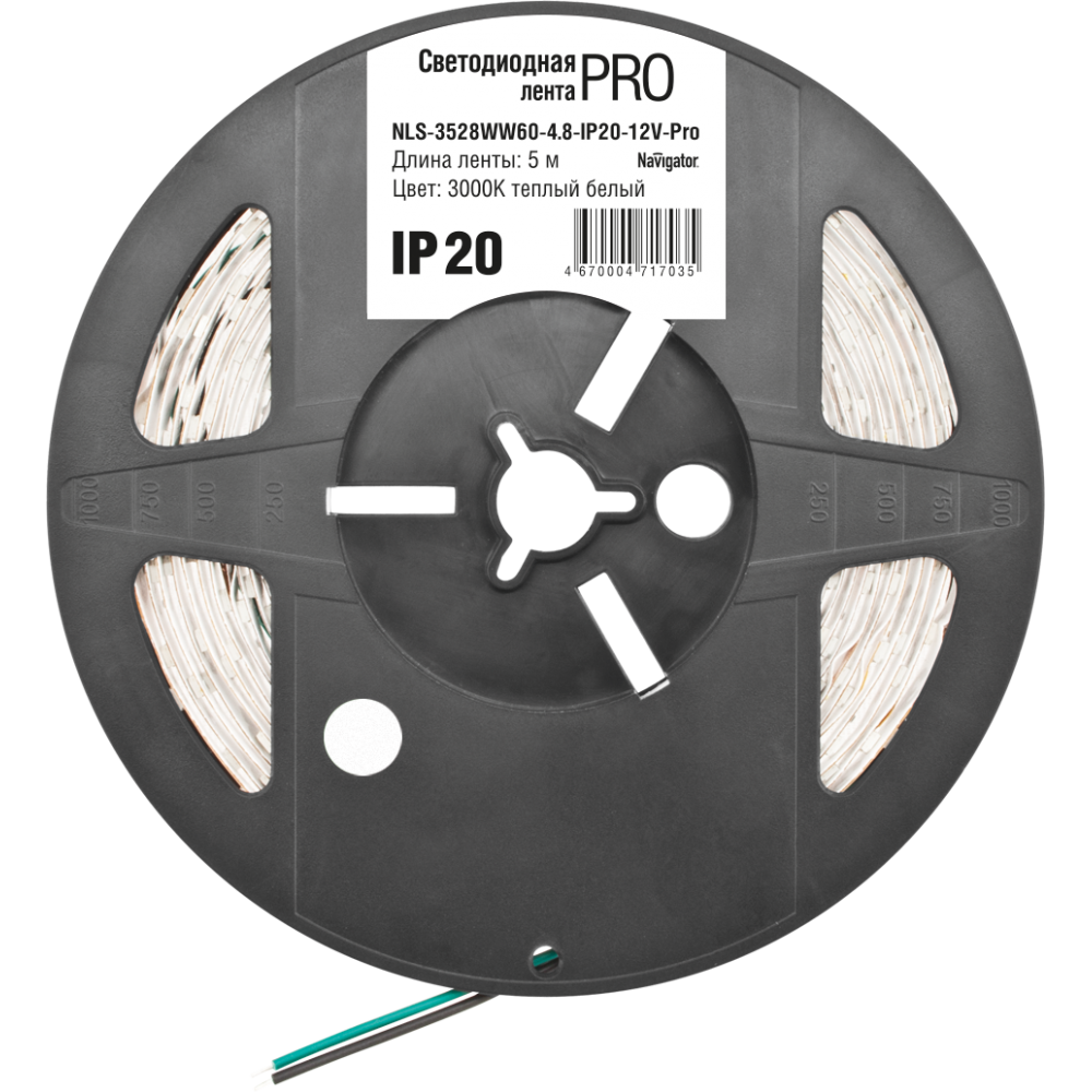 Лента светодиодная NLS-3528WW60-4.8-IP20-12V-Pro R5, 5м, 60шт./4.8Вт на метр, 12V, 3000K, белый, IP20 Navigator (71703), NLS-3528WW60-4.8-IP20-12V-Pro R5