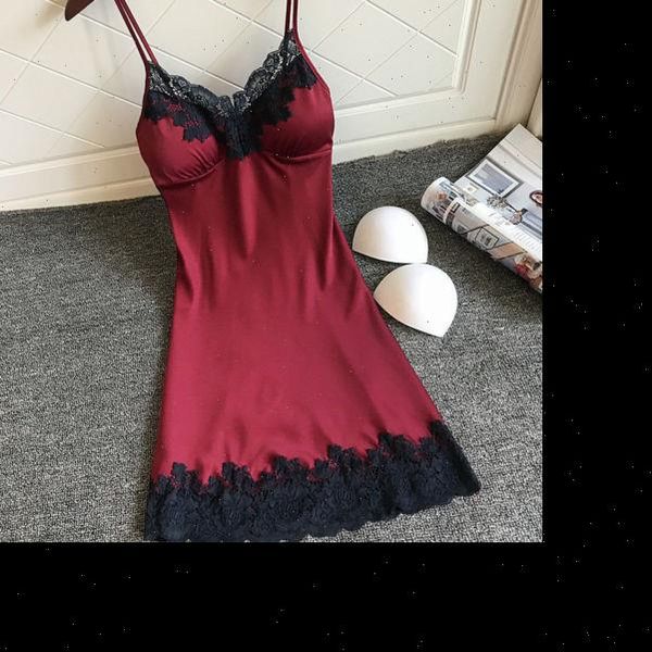 lace backless patchwork womens sleepwears v neck suspenders babydoll nightgowns clothing night dress, Black;red