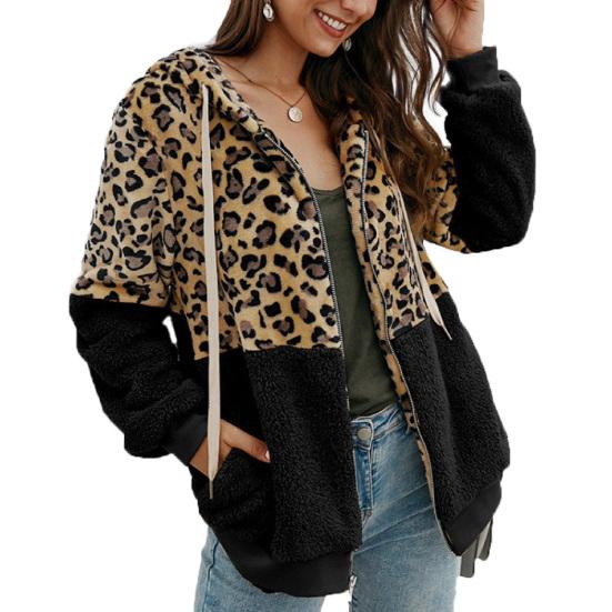 Куртка женская из искусственного меха на замке-молнии с леопардовым принтом XL чёрный
