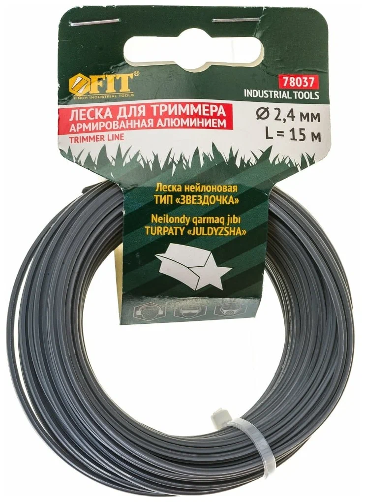 Леска триммерная FIT 78037, звезда 2.4 мм x 15 м (78037), 78037