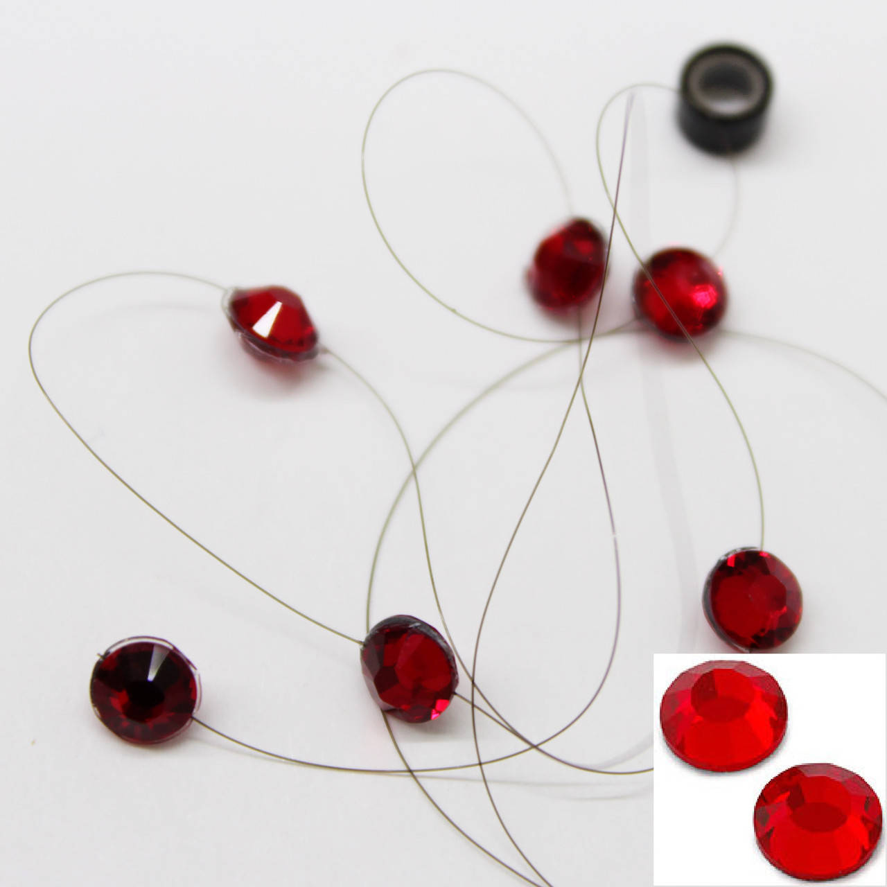 Леска черная со стразами цвета Lt Siam (размер страз 5мм в диаметре).Количество страз на леске (6х2).Длина лески 30см +свободный край 20см. Микроколечко входит в комплект.