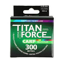 Titan Force Carp – специализированная мягкая карповая леска, цвета multicolor (многоцветная - мультиколор) с повышенной растяжимостью, что позволяет компенсировать мощные рывки рыбы и предотвращает обрыв снасти. Стойкая к ультрафиолетовым лучам, обладает минимальной памятью.