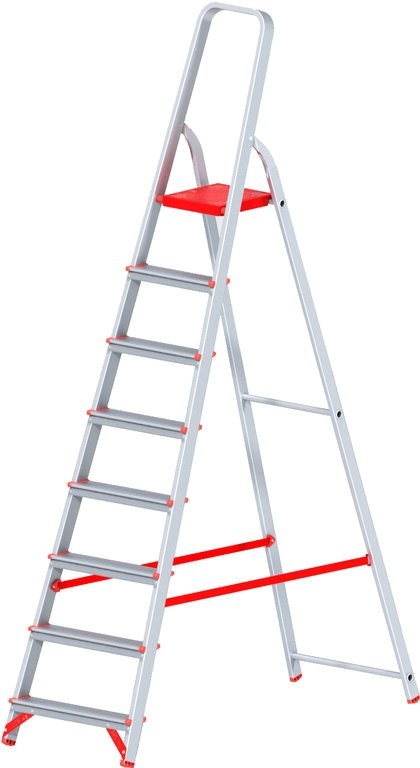 лестница-стремянка, 8 ступеней, алюминий, верхняя площадка