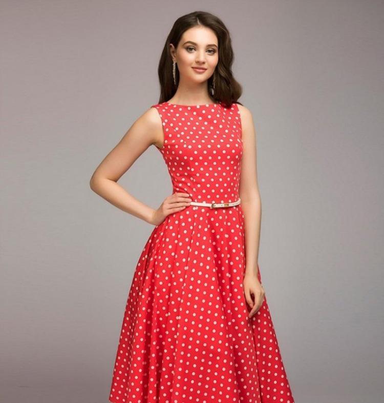 Летнее Ретро Платье в Горошек Свободного Кроя Женское Без Рукавов Новая Коллекция S красный