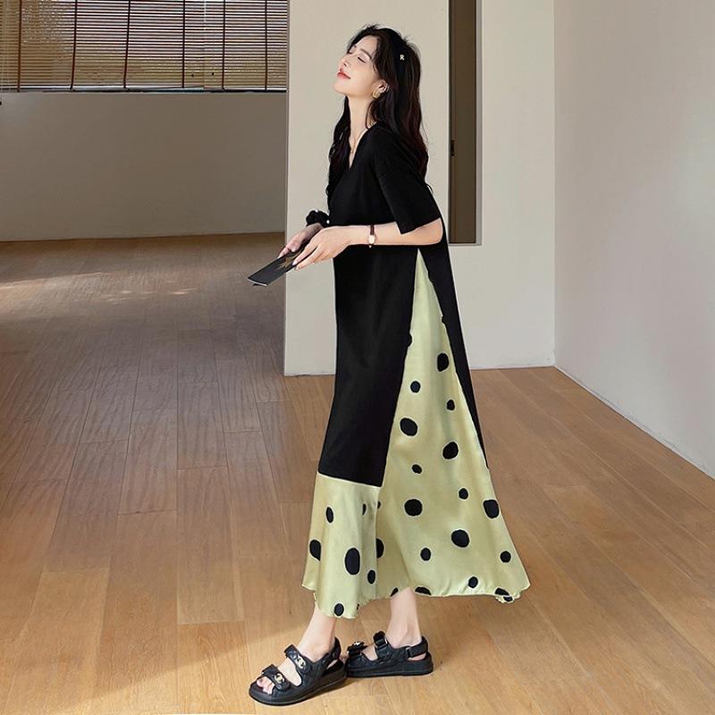 Летнее женское платье больших размеров, длинные платья в горошек с v-образным вырезом и короткими рукавами 3XL чёрный