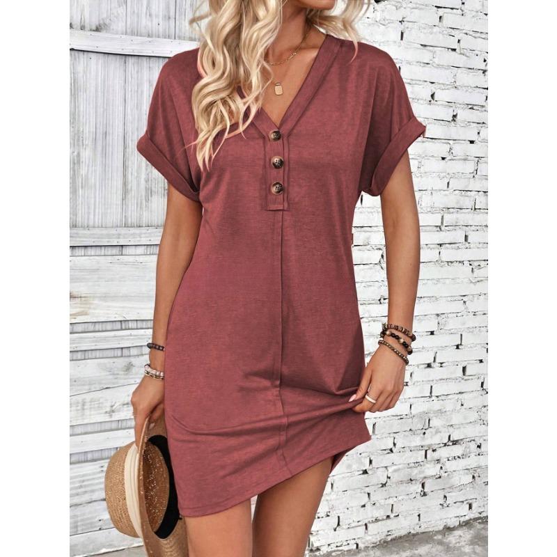Летнее женское платье, модное однотонное платье с пряжкой, V-образным вырезом и закатанными рукавами XL кирпич красный