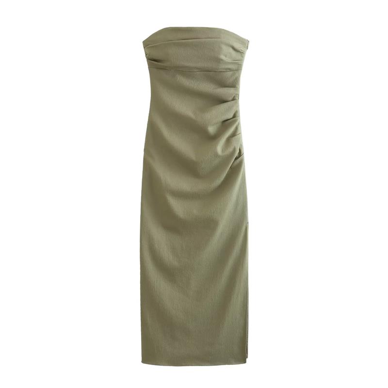 Летнее женское платье 2023, новое шикарное элегантное платье без рукавов с рюшами, плотное праздничное платье, модное уличное повседневное удобное женское платье L армия зеленый