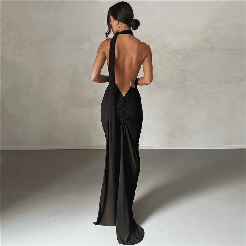 Летнее женское сексуальное женское сексуальное платье с открытой спиной, шеей и ягодицами в европейском и американском стиле, облегающее вечернее платье S чёрный
