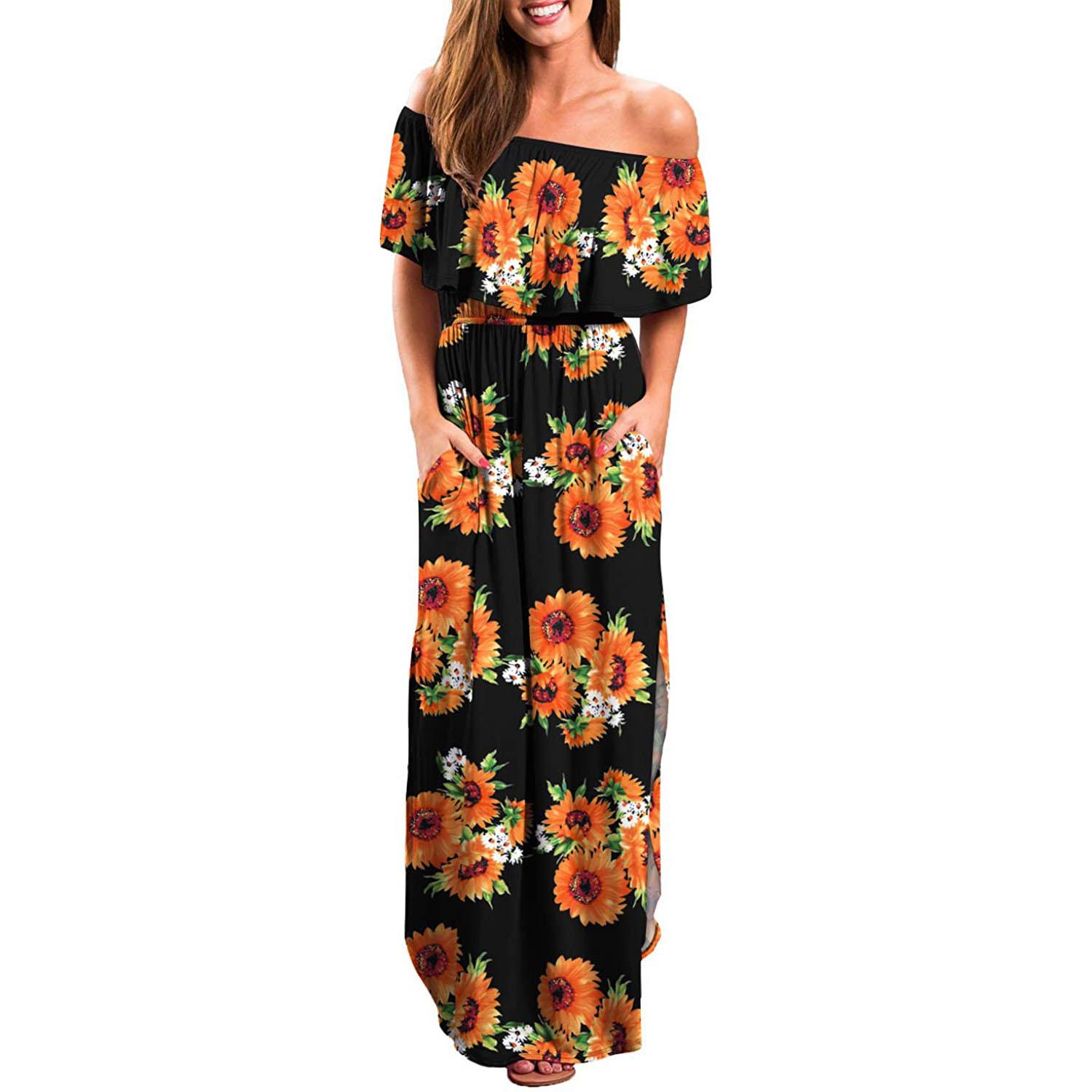 Летнее женское цельное платье с рукавами «летучая мышь» и цветочным принтом на плоском плече XL чёрный