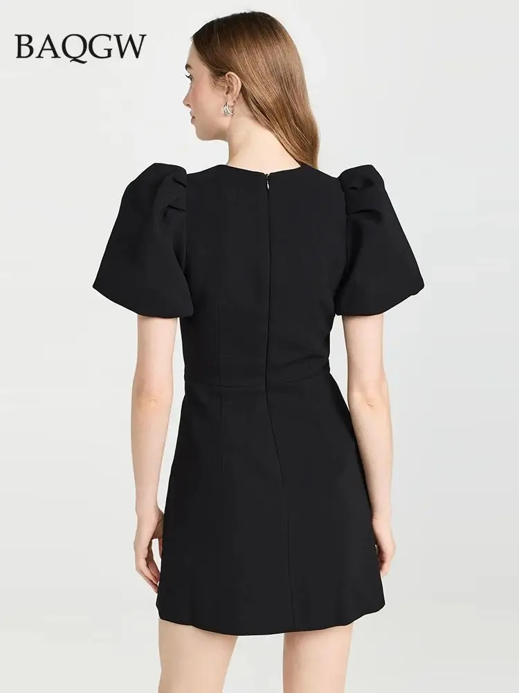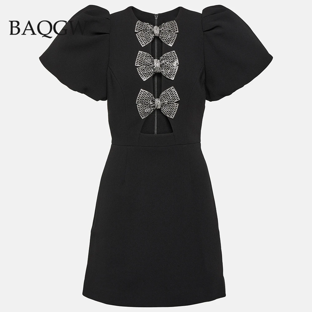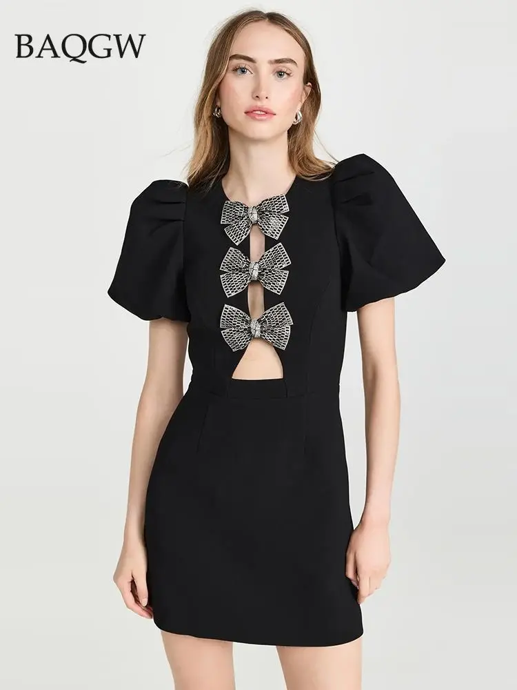 Летнее женское черное сексуальное облегающее платье мини с коротким рукавом и круглым вырезом