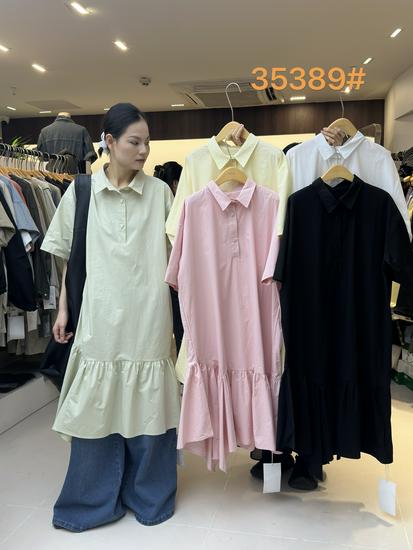 Летнее корейское свободное платье-рубашка большого размера с неровными оборками и короткими рукавами One Size жёлтый