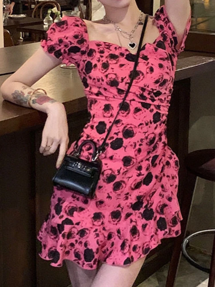 Летнее милое Цветочное платье, женское пикантное мини-платье с открытой спиной и рюшами для вечерние, женское корейское модное милое платье...