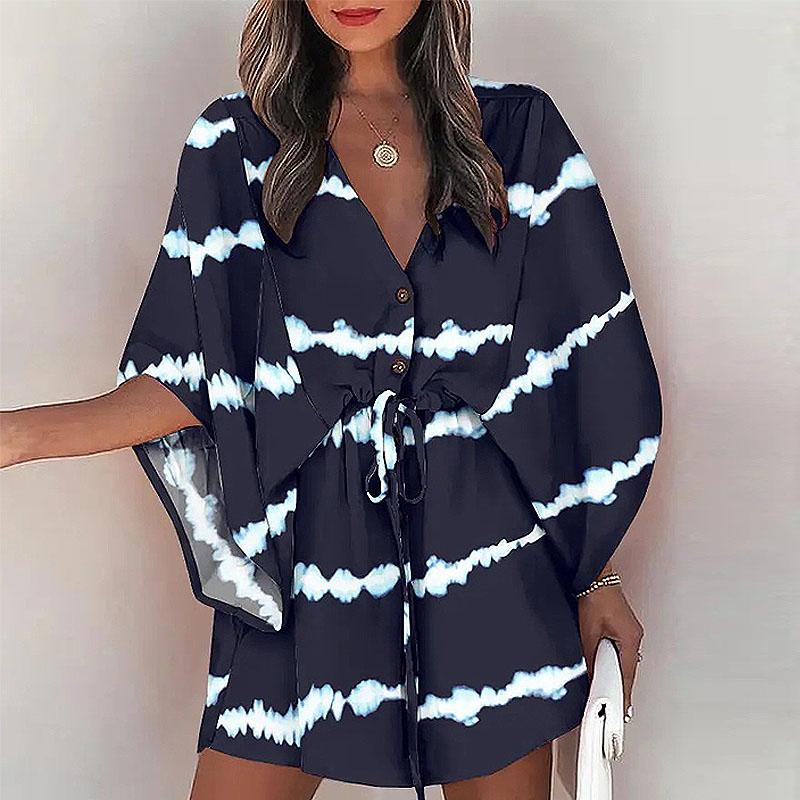 Летнее мини-платье женское с принтом, рукавами «летучая мышь», на шнуровке, с v-образным вырезом, свободные платья на пуговицах, женское пляжное вечернее платье XXXL