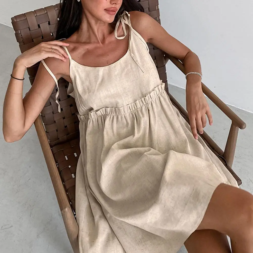 Летнее мини-платье с плиссированной талией, женское мини-платье, дышащее пляжное платье