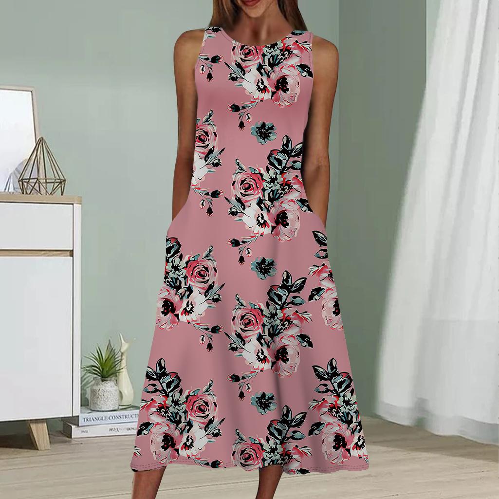 Летнее модное сексуальное платье без рукавов, мягкое повседневное платье с принтом 3D-красных цветов, платье без рукавов на бретельках 8XL розовый
