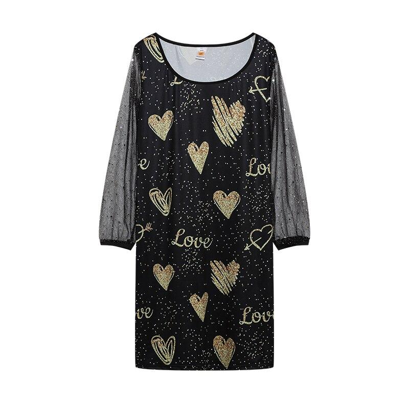 Летнее платье из сетки с блестками и круглым вырезом, элегантное платье с цветочным принтом и бабочкой, платье больших размеров, модные сексуальные платья с длинными рукавами, женская одежда 25880 L теплый черный