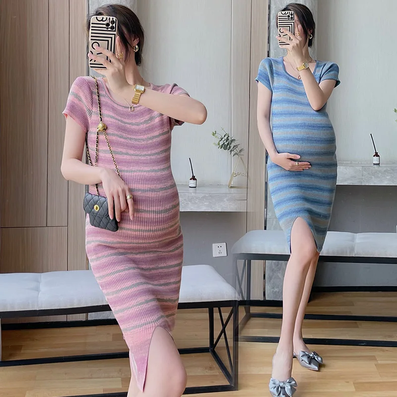 Летнее платье 1231 #2022, Крутое тонкое трикотажное облегающее платье для беременных женщин