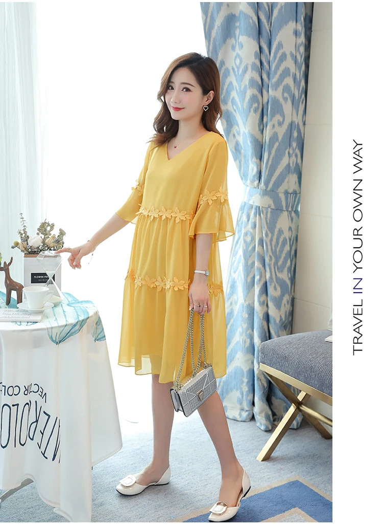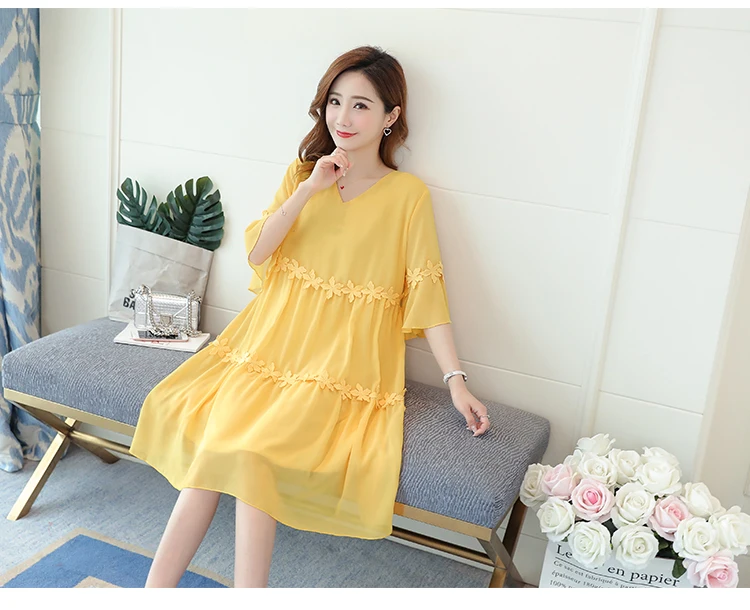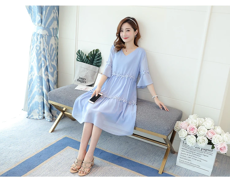 Летнее шифоновое платье для беременных с коротким рукавом и V-образным вырезом