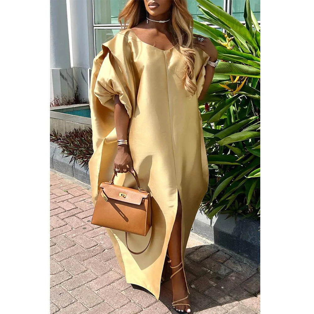 Летнее элегантное платье-макси из полиэстера с круглым вырезом и коротким рукавом