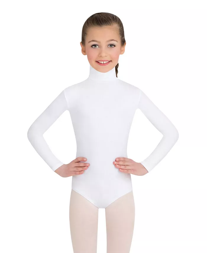 Купальник с длинными рукавами и высоким воротом для девочек с кнопками Capezio, белый