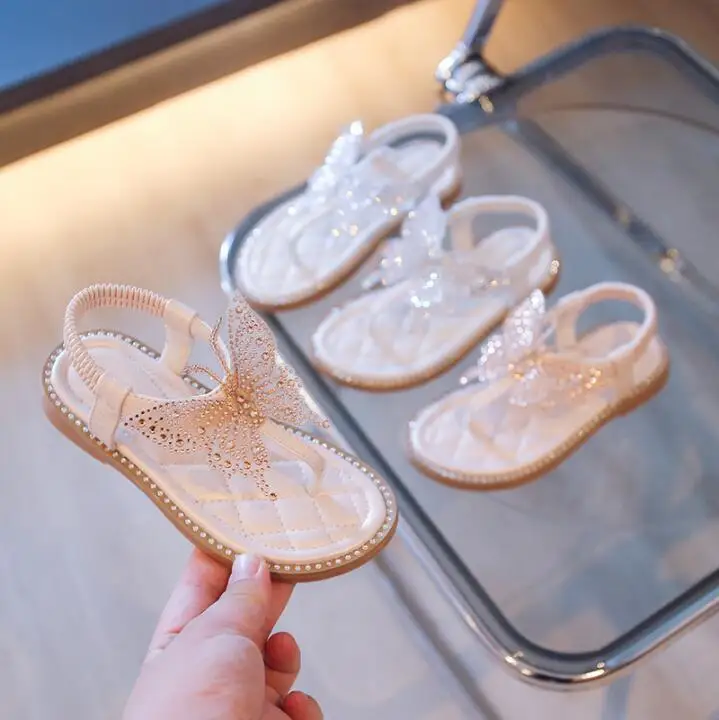 Летние Новые Модные эластичные босоножки для девочек с зажимом в виде бабочек и больших мальчиков, новинка 2023