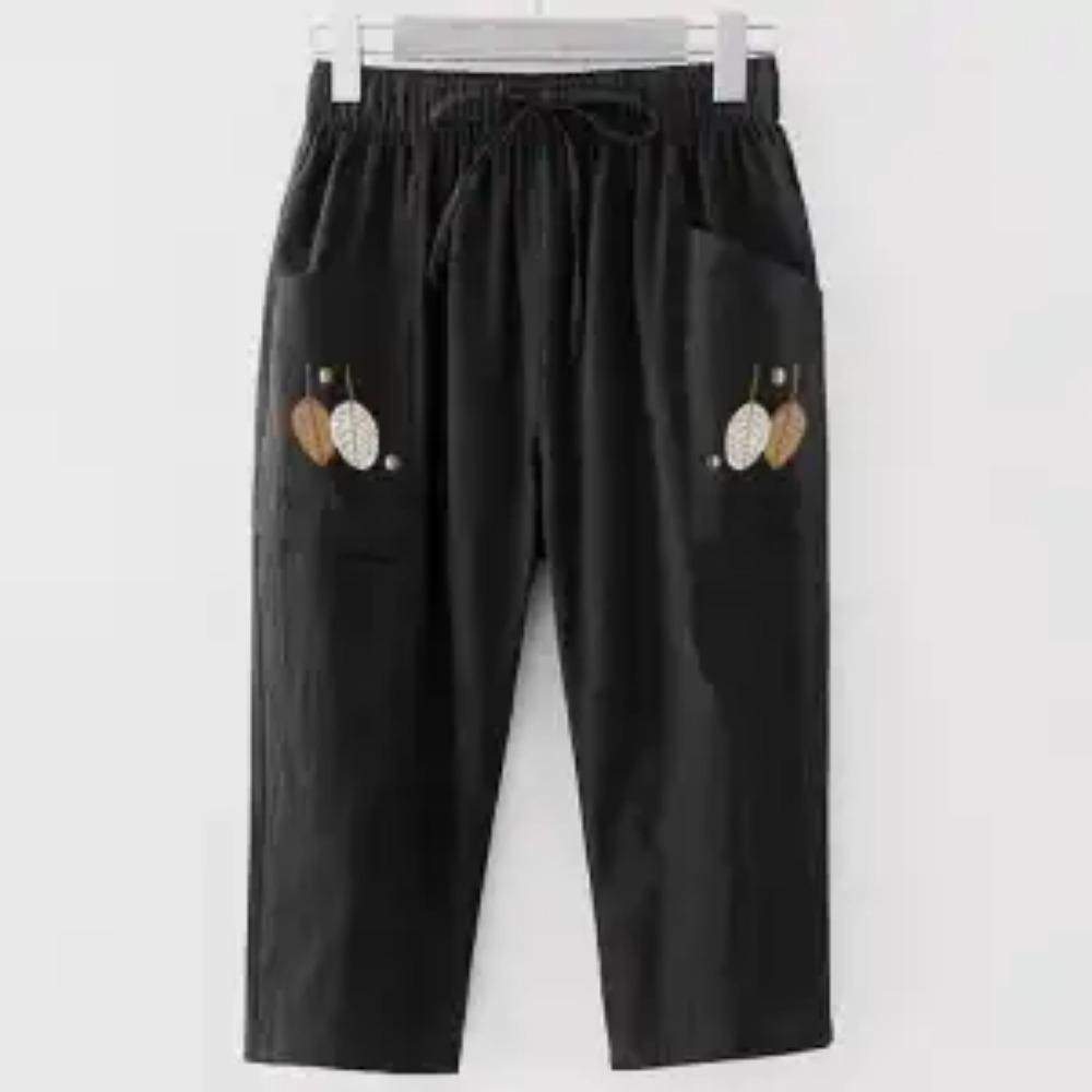 Летние Новые Однотонные Вышитые Хлопковые Брюки Женские Эластичная Талия Карманы Свободные Удобные Элегантные Шикарные Прямые Брюки 4XL чёрный