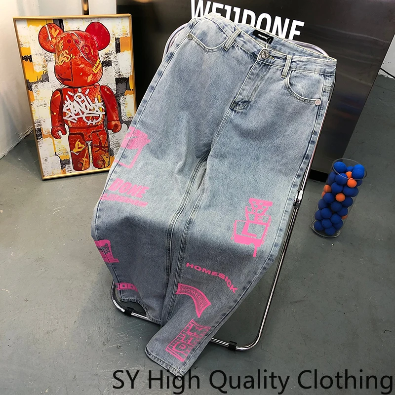Летние Новые WE11, готовые флуоресцентные граффити логотип прямые брюки с широкими штанинами