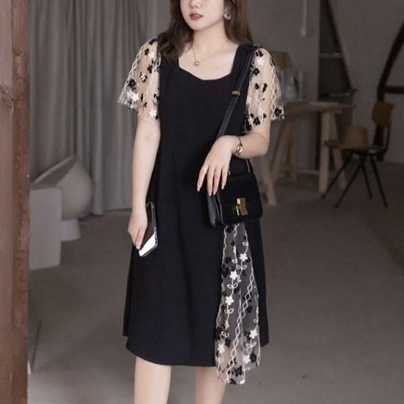 Летние Стильные Платья Пэчворк из Марли Асимметричная Женская Одежда Элегантный Квадратный Вырез Винтажное Миди-платье с Потертыми Цветами Новое 5XL чёрный