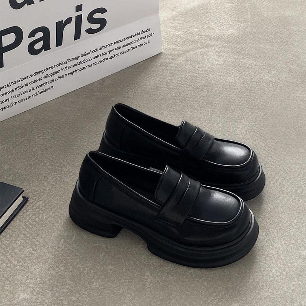 Летние кожаные мокасины на толстой подошве для женщин 38 чёрный