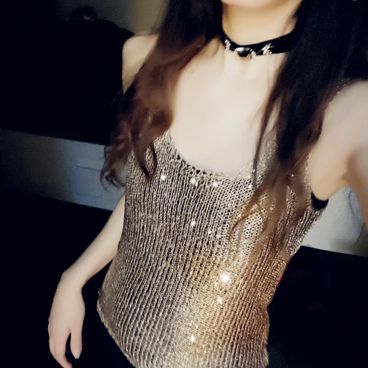 Летние блестящие майки, облегающие блестящие повседневные топы для девочек