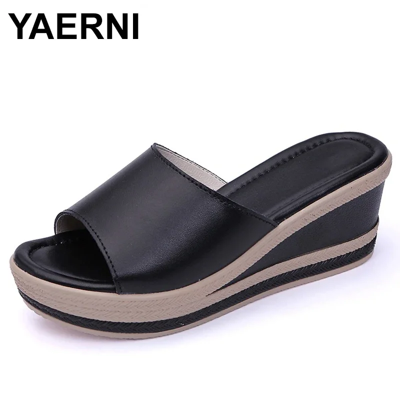 Летние женские кожаные шлепанцы yaernigenhot, женские шлепанцы с открытым носком, женские сандалии, черные, белые шлепанцы