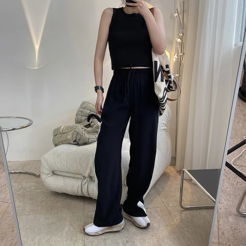 Летние женские повседневные однотонные с высоким уровнем и отрезной талией, для девочек свободные широкие штаны