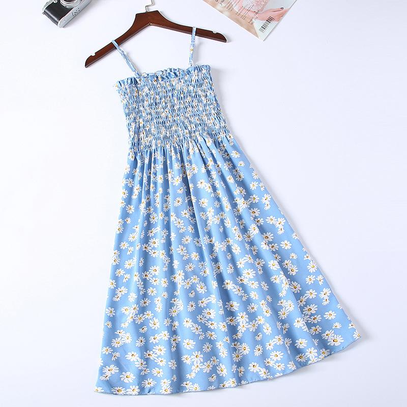 Летние женские сексуальные платья без рукавов Женское шифоновое платье трапециевидной формы в богемном стиле с цветочным принтом без бретелек One Size синий