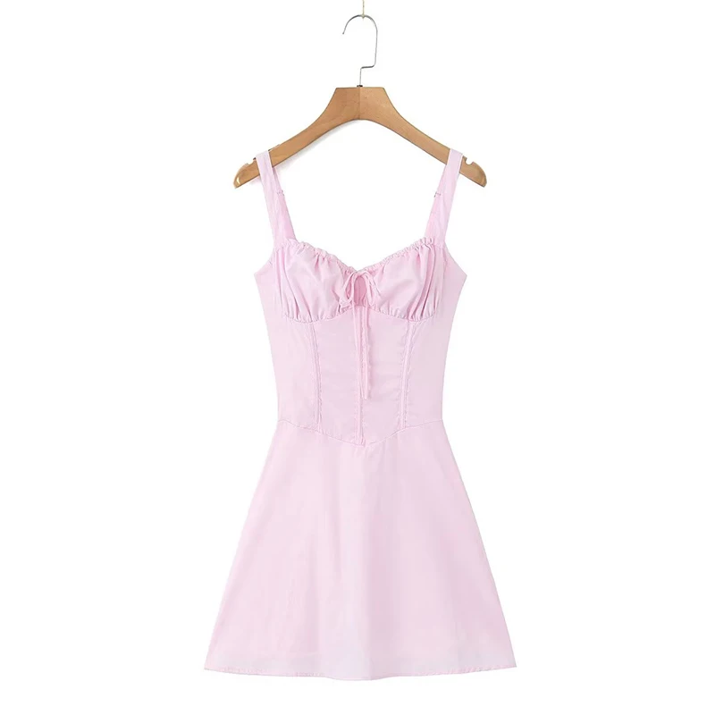 Летние женские сексуальные розовые мини-платья на бретельках без рукавов, женское платье